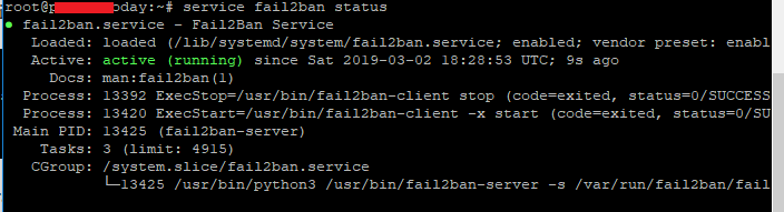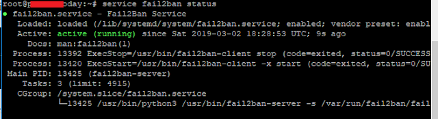service fail2ban restartuntuk memasitikan fail2ban berjalan ketikan perintah service fail2ban status , jika aktif akan muncul bertulis kan active (running) seperti di bawah